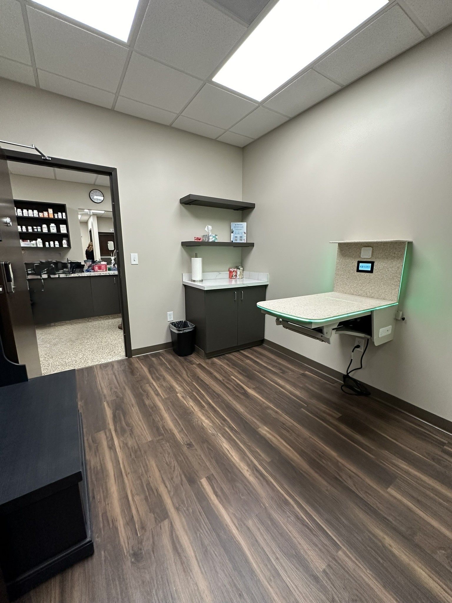 This adaptive-reuse veterinary renovation included a full interior reconfiguration to support efficient clinical workflow and high-quality patient care.